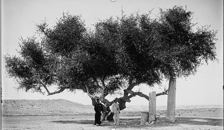 To map Egypt, the British began to map what was not Egypt. Here, villages were divided, and imaginaries were created. But how did Rafah come into play as the final point – and when did we begin to treat this division as reality? Two soldiers stand under an olive tree