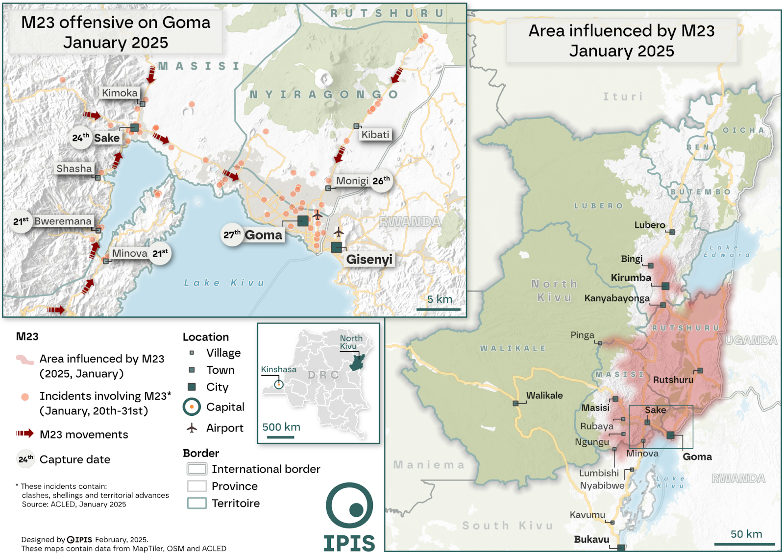 Map 1: Area influenced by M23, January 2025. (source : IPIS)